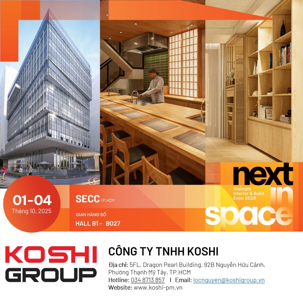 Đừng bỏ lỡ cơ hội kết nối cùng KOSHI GROUP tại HALL B1 – B027, Triển lãm VIBE 2025 để khám phá giải pháp quản lý dự án và thiết kế nội thất phong cách Nhật hiện đại – chuyên nghiệp và khác biệt!
